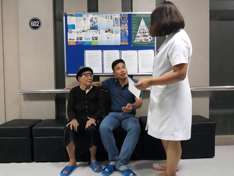 Bệnh nhân Lê Thị Sao (mẹ anh Ngọc) được bác sĩ hỏi han khi chờ tái khám